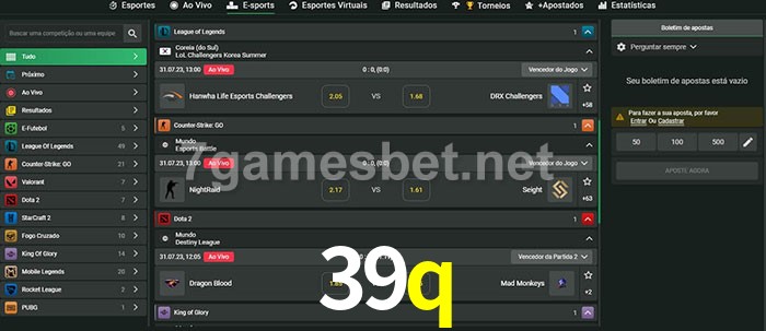 O 39q oferece uma grande seleção de opções de apostas em e-sports com probabilidades competitivas